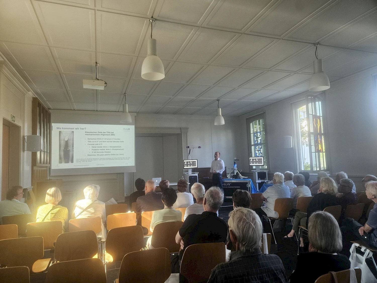 Die beiden erfahrenen Orthopäden Dr. med Andreas Schuster und Prof. Dr. med Heiko Graichen, erklärten in ihren Vorträgen anschaulich die Vorteile der Roboterchirurgie: höchste Präzision, minimalinvasive Eingriffe, kürzere Genesungszeiten und geringeres Komplikationsrisiko für die Patientinnen und Patienten.