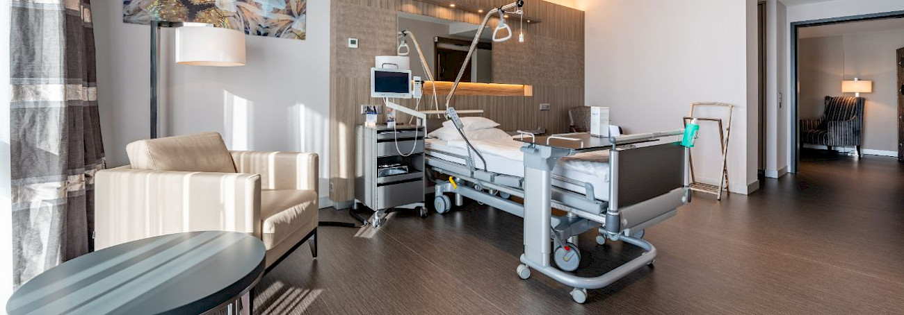 Für mehr Privatsphäre bieten wir auf Anfrage Upgrades auf verschiedene Zimmerkategorien an. Bei Interesse wenden Sie sich bitte vor Ihrem Aufenthalt an unsere Patientendisposition.