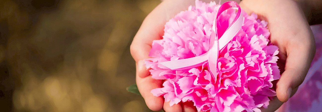 Breast cancer awareness in October: pink ribbon and gentle symbols promoting prevention and early detection of breast cancer.