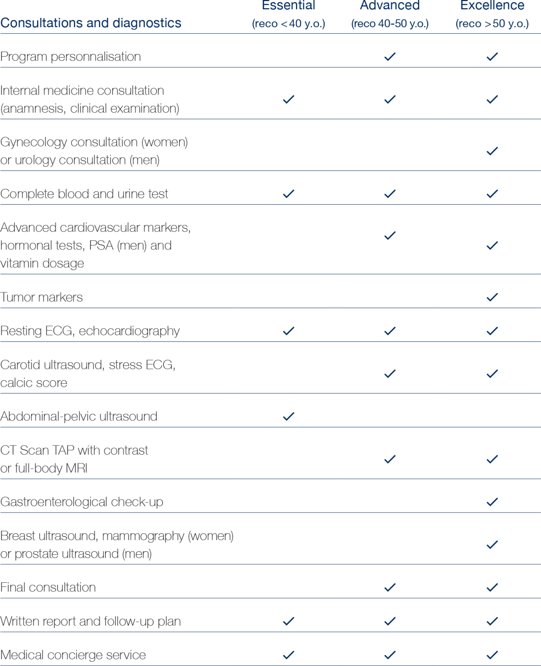 Price as of 3'190 CHF. Contact us to discover your personalized check-up.