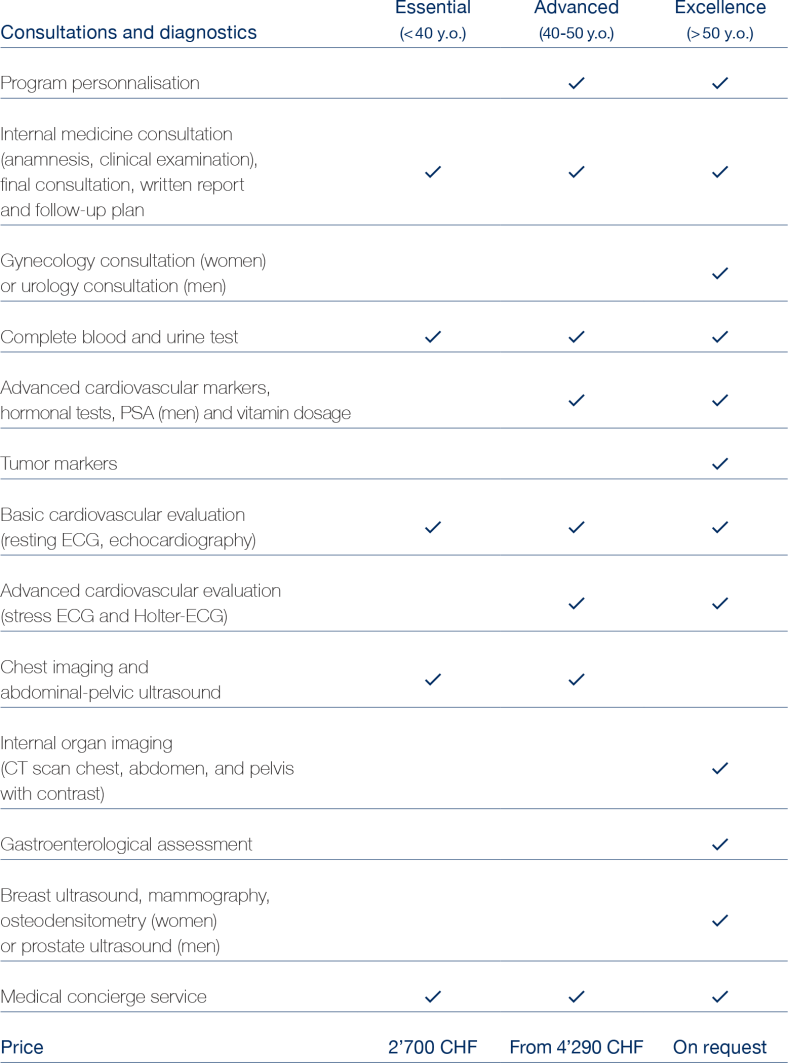 We offer several standardized check-up programs that can be further personalized to meet individual requirements: