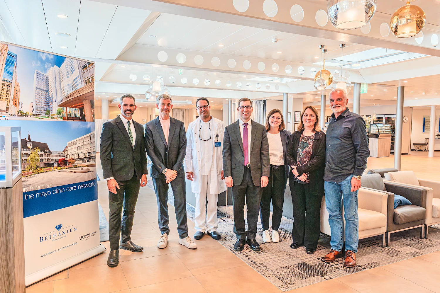 From September 29 to October 2, Swiss Medical Network welcomed a team from Mayo Clinic - consisting of Dr. Dougan, Troy Delaney and Mary Meyer - to its clinics Clinique de Genolier, Privatklinik Bethanien and Clinica Sant'Anna.