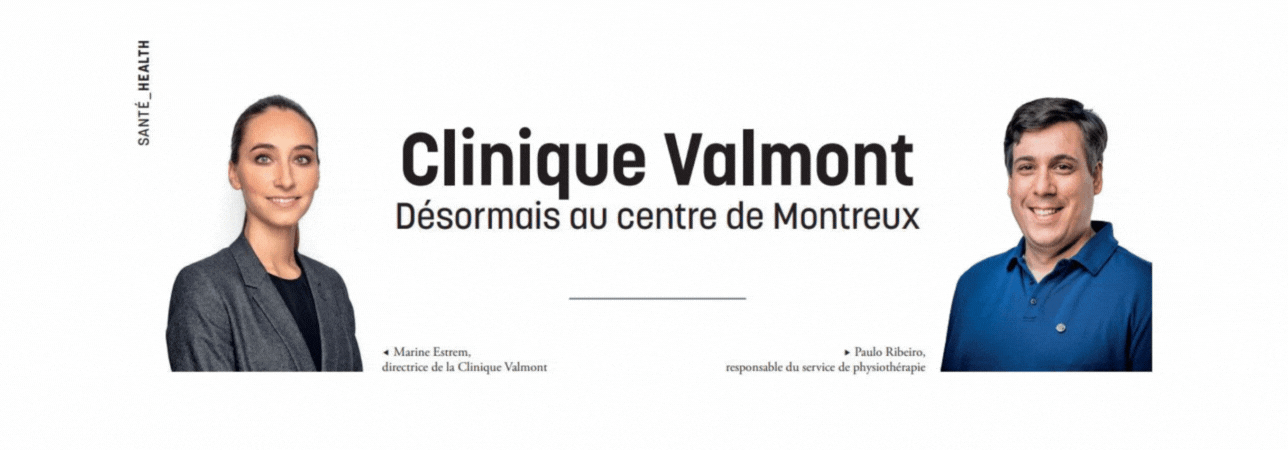 Rencontre pour le magazine Montreux-Vevey avec Marine Estrem, directrice de la Clinique Valmont, et Paulo Ribeiro, responsable du service de physiothérapie.