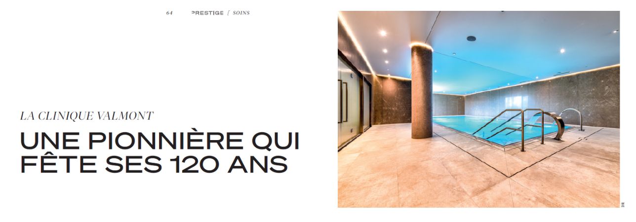 Dans sa dernière édition, le magazine Prestige Immobilier revient sur l'histoire iconique de la Clinique Valmont, depuis sa création en 1905.