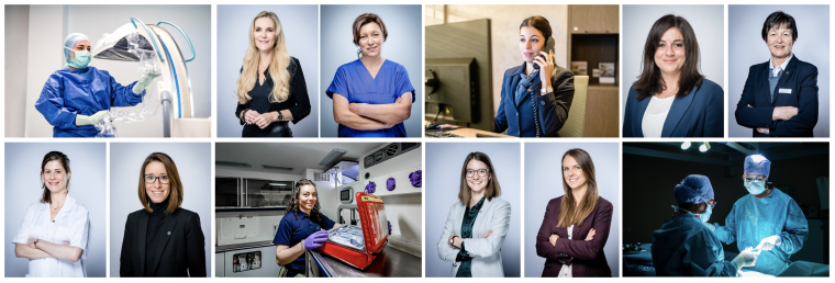 Plus de 350 collaboratrices et collaborateurs et plus de 20 nationalités veillent au bien-être de nos patientes et patients 24h/24, 365 jours par an grâce aux professions qui sont mises au service de la santé et du confort de vie.