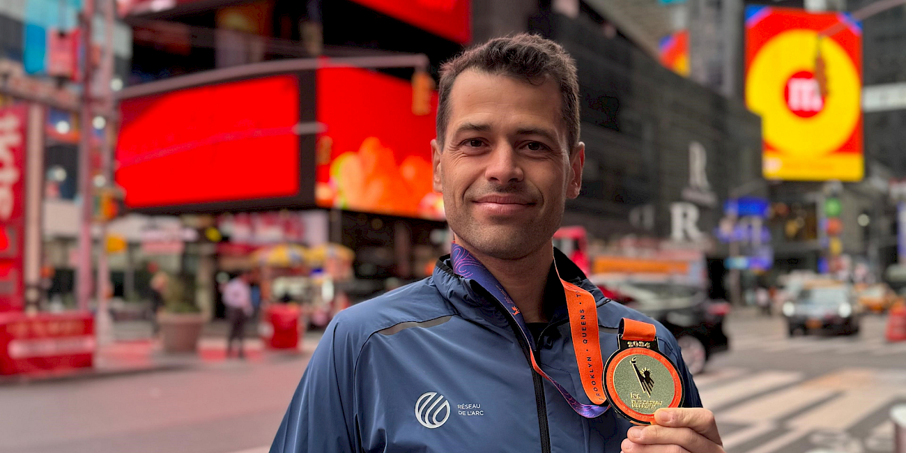 Pour tourner la page de cette épreuve, le Dr Castro Reina s’est lancé un défi de taille : participer au marathon de New York. Accompagnant son épouse dans sa première course du genre, il a aussi voulu honorer l’équipe qui l’avait aidé dans son rétablissement : « Ce marathon symbolisait ma résilience et mon retour après une blessure. Je souhaitais aussi, en portant les couleurs du Réseau de l’Arc, remercier l’équipe qui m’a accompagnée dans ma préparation. »